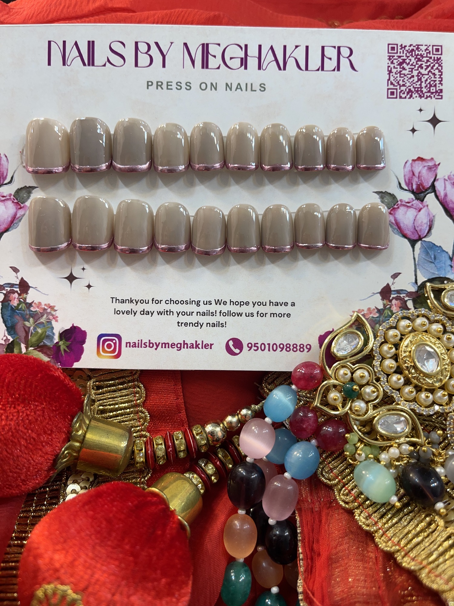 Upgrade your look with our beautifully handcrafted press-on nails, designed to add a touch of elegance and style to every outfit. Whether it’s a casual day or a special occasion, these nails perfectly complement both traditional and western looks.